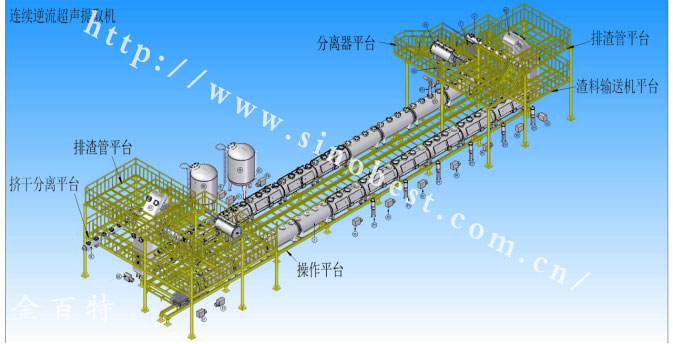 提取裝置,包括多節超聲提取管、浸泡提取管、螺旋推進器、攪拌器、連軸桿和套、驅動電機減速機等。