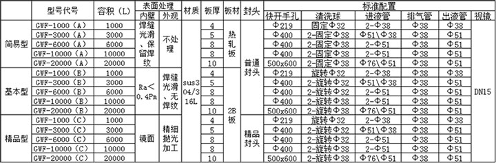 罐體上的配置,管口數量、大小可依據需要設計、制造。